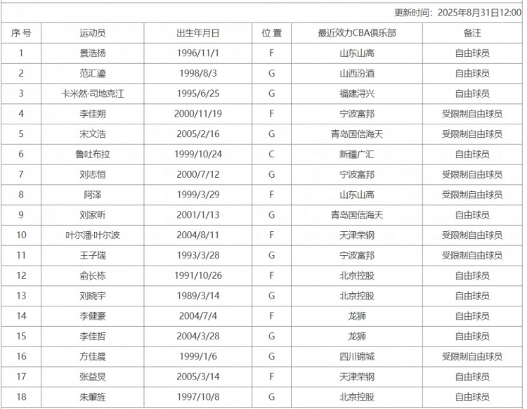 22年探花秀!CBA官网更新联赛自由球员名单:新增范汇鎏 更新时间:2025-08-31 13:13:30 天涯直播8月31日讯 CBA官网今天更新了联赛自由球员名单,新增范汇鎏等人。 范汇鎏是2022年的探花秀,最近他代表北控出战了夏季联赛青岛站。 【资讯关键词】: